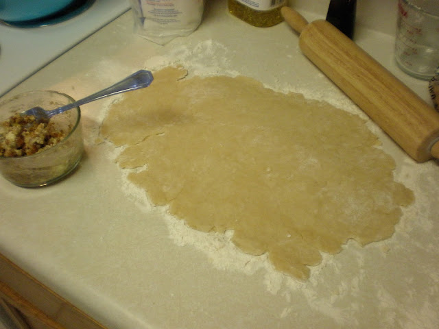 Roll out the rested dough and spread the pecan butter mixture over all of the dough. Make sure to get the edges.